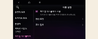 헤드업 디스플레이 기능을 켜면 헤드업 디스플레이 영상 조정 및 표시 정보 변경이 가능합니다.