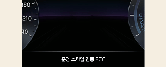 운전 스타일 연동이 작동하면 계기판에 ‘운전 스타일 연동 SCC’ 문구가 2초 동안 표시되고, 운전자의 주행 성향이 반영된 차간거리 단계 및 목표 차간거리가 표시됩니다.