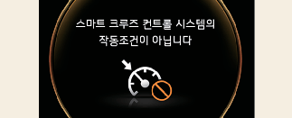 스마트 크루즈 컨트롤이 작동할 수 있는 조건이 아닐 때 시스템을 사용하기 위해 주행 보조 버튼이나 (+) 또는 (-) 스위치, 「」 스위치를 누르면 경고문과 경고음을 통해 스마트 크루즈 컨트롤 작동 조건이 아님을 알립니다.