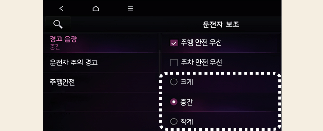 경고 음량을 변경하면 다른 운전자 보조 시스템의 경고 음량도 같이 변경될 수 있습니다. 고려하여 변경하십시오.