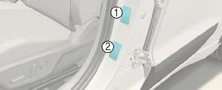 자기 인증 라벨과 타이어 공기압 라벨은 운전석 옆 센터 필러에 부착되어 있습니다.