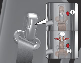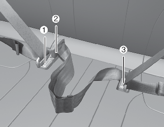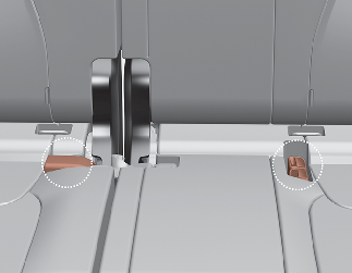Evite prender à força o trinco dos cintos de segurança esquerdo ou direito na fivela do cinto de segurança central traseiro. Isso pode danificar a fivela do cinto central e impedir que o trinco engate devidamente no futuro.