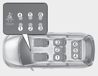 Para alertar o passageiro de trás, a luz de aviso para colocação do cinto de segurança ilumina-se durante aproximadamente 6 segundos sempre que ligar (posição ON) o botão ENGINE START/STOP (ligar/desligar o motor), quer o cinto esteja colocado quer não.