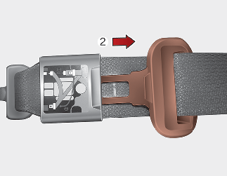 Puxe a lingueta para fora do suporte no cinto de segurança (2).
