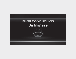 Esta mensagem de aviso é apresentada se o depósito do fluido de lavagem estiver quase vazio.
