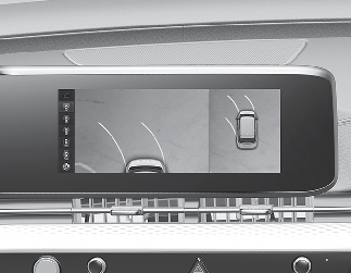 Quando "Parking Distance Warning" (Aviso de distância de estacionamento) é selecionado, o aviso de distância de estacionamento é apresentado no lado direito do ecrã de monitorização de vista em volta.