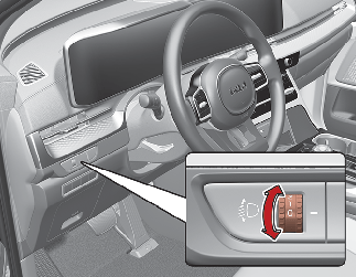 Para regular o nível do feixe dos faróis de acordo com o número de passageiros e o peso da carga transportada na bagageira, rode o interruptor de nivelamento dos faróis.
