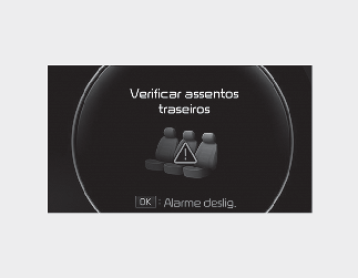 Prima "Vehicle (veículo) → Convenience (comodidade) → Rear Occupant Alert (Alerta de passageiro traseiro)" no ecrã do sistema Infotainment.
