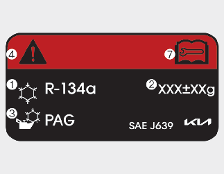 Início > Sistemas e equipamentos do veículo > Sistema de climatização > Etiqueta de refrigerante do ar condicionado
