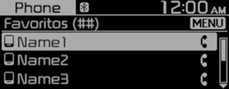 No ecrã do telefone, rode o botão [TUNE] (Sintonizar) no painel de controlo para selecionar Favorites (Favoritos) e prima o botão.