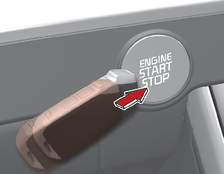 Se a bateria estiver com pouca carga ou a Smart Key não funcionar corretamente, é possível ligar o motor premindo o botão ENGINE START/STOP (Ligar/desligar o motor) com a Smart Key.
