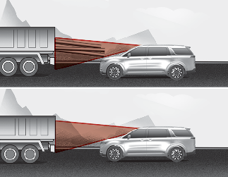 Se a Assistência à prevenção de colisão frontal não funcionar normalmente após a obstrução (neve, chuva ou materiais estranhos) ser removida (incluindo do atrelado, para-choques traseiro, etc.), solicite que o veículo seja inspecionado por uma oficina profissional. A Kia recomenda que visite um concessionário/parceiro de serviços autorizado Kia.