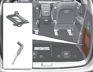 O macaco e a chave de rodas estão guardados na bagageira.