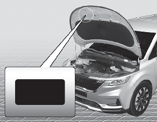A etiqueta do líquido de refrigeração encontra-se no acabamento da carroçaria frontal.