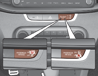 Lorsque le commutateur de marche/arrêt d'airbag frontal de passager est en position d'arrêt, l'airbag frontal de passager est désactivé.
