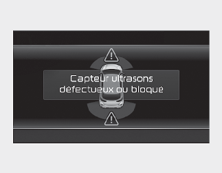 Le message ‘Ultrasonic sensor error or blockage (Capteur ultrasons défectueux ou bloqué)’ apparaît dans le combiné d’instruments.