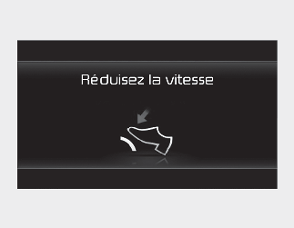 Lorsque la vitesse du véhicule est supérieure à 20km/h lors de la recherche d'une place de stationnement, un message vous invite à réduire votre vitesse.