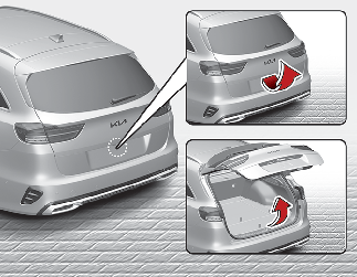 Le hayon bascule vers le haut. Vérifier l’absence d’objets ou de personnes à l’arrière du véhicule en ouvrant le hayon.