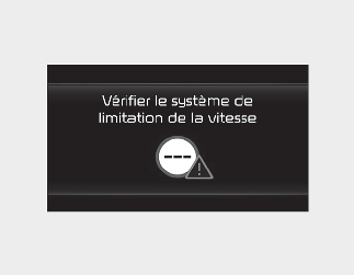 Lorsque l'avertissement de limite de vitesse intelligent ne fonctionne pas correctement, le message d'avertissement "Check speed limit system" (Vérifier le système de limite de vitesse) apparaît sur le combiné d'instruments. Le cas échéant, nous vous recommandons de faire vérifier la fonction par un concessionnaire/réparateur Kia agréé.