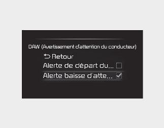 Si le moteur est redémarré, l'avertissement de conduite inattentive conservera le dernier réglage.