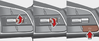 Abaissez le commutateur - et maintenez-le dans cette position tout en observant la vitesse de consigne sur le combiné d'instruments. La vitesse de croisière diminuera d'abord au multiple de dix le plus proche, puis de 10 km/h (5 mi/h) chaque fois que le contacteur est actionné de cette manière.