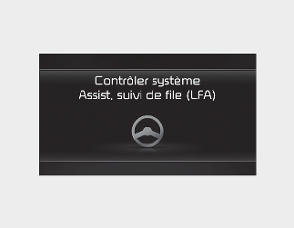 Lorsque l'aide au suivi de voie ne fonctionne pas correctement, le message "Vérifiez le système d'aide au suivi de voie (LFA)"