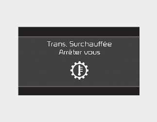 Si vous ignorez cet avertissement, les conditions de conduite risquent de se détériorer. Les changements de vitesse peuvent être brusques, fréquents ou avec des à-coups. Pour revenir à des conditions de conduite normales, arrêtez le véhicule et appuyez sur le frein ou passez en position P (stationnement).