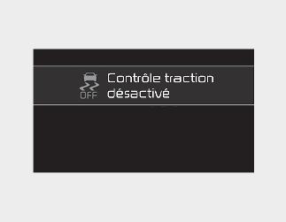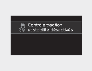 Appuyez sur le bouton ESC OFF brièvement (le témoin ESC OFF s’allume et un message s’affiche). Dans cet état, la fonction de commande du moteur du véhicule ne fonctionne pas. En d'autres termes, la fonction de contrôle de traction ne fonctionne pas mais seule la fonction de contrôle de frein fonctionne.