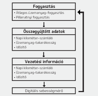 A rendszer csak legalább 300 méter megtétele után számítja ki az üzemanyag-fogyasztási információkat.