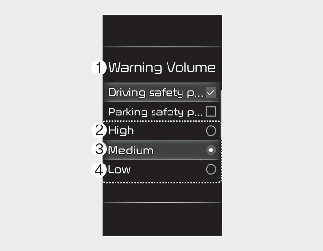Si se vuelve a arrancar el vehículo, el volumen de aviso conservará el último ajuste.