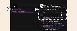Avertissement de limite de vitesse et Assistance de limite de vitesse avertit le conducteur lorsque la vitesse du véhicule dépasse la vitesse à laquelle le Décalage de la limite de vitesse est ajouté à la limite de vitesse, ou applique le décalage de la limite de vitesse défini à la limite de vitesse détectée.
