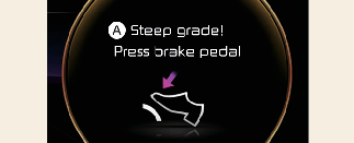 Ce message d'avertissement s'affiche lorsque le véhicule roule lentement sur une pente et qu'il détecte que la pédale de frein n'est pas actionnée.