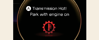 Si le véhicule continue à rouler et si la température de l'embrayage atteint la limite de température maximale, l'avertissement "Transmission hot! Park with engine on" (Température élevée! Stationnez avec le moteur en marche ») s'affichera. Dans ce cas, l'embrayage est désactivé jusqu'à ce qu'il refroidisse à une température normale.