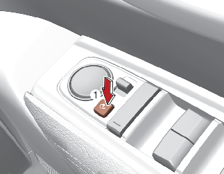 To fold the outside rearview mirror depress the button (1).