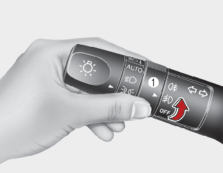 Les feux antibrouillard sont utilisés pour améliorer la visibilité en cas de brouillard, de pluie, de neige, etc. Les feux antibrouillard s’allument lorsque le commutateur de feu antibrouillard (1) est activé après l’allumage des feux de stationnement.
