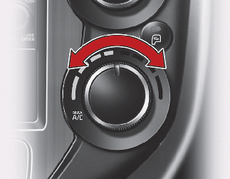 Le bouton de contrôle de température vous permet de contrôler la température de l'air qui circule dans le système de ventilation. Pour modifier la température de l’air dans l’habitacle, faites tourner le bouton vers la droite pour avoir de l’air chaud ou très chaud, et vers la gauche pour avoir de l’air froid.