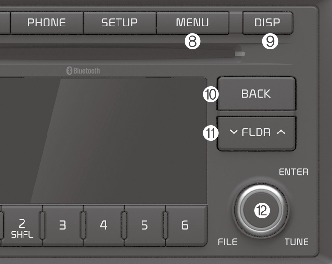 Mode Média : Recule ou avance rapidement dans le morceau en cours de lecture. (sauf BT Audio, AUX)