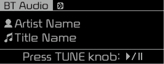 Pendant la lecture de BT Audio*, une pression sur la molette TUNE permet de lire et de mettre en pause la chanson en cours.
