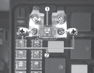 Si le fusible (1) PRINCIPAL (100 A) a grillé, il doit être déposé comme suit :