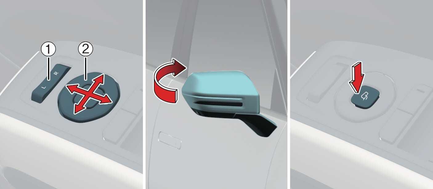 Move the outside rear view mirror switch (1) to select the left or right side of the mirror.