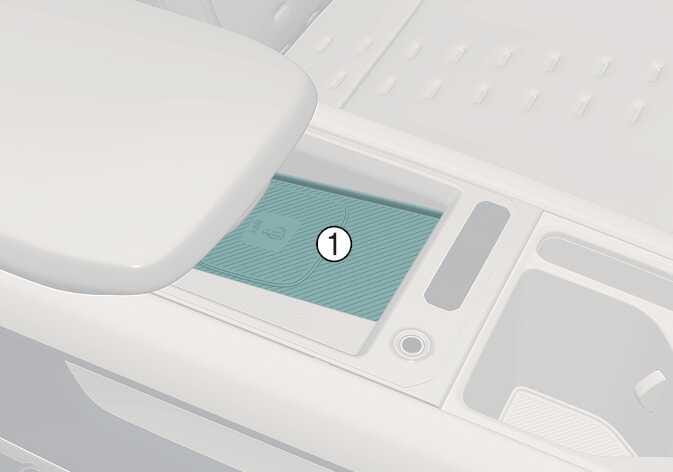 After placing your registered card key 2 on the in-vehicle authentication pad (wireless charger pad), depress the brake pedal and press the EV button to start the vehicle.