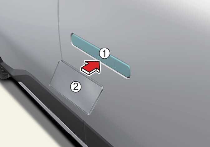 If the driver touches the NFC antenna of the registered card key 2 on the driver's or passenger's door handle authentication pad (1) for more than 2 seconds, the door will lock or unlock.