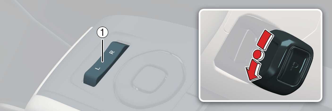 Select L (driver's seat) or R (passenger's seat) with the DSM camera control selection lever (1).