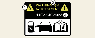 Po otwarciu pokrywy gniazda ładowania sprawdzić symbol ładowania w dolnej części etykiety ostrzegawczej.