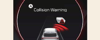 For at advare føreren om en kollision vises advarselsmeddelelsen på klyngen, der høres en hørbar advarsel, og rattet begynder at vibrere.