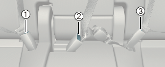 Avant d'attacher les ceintures de sécurité arrière, s'assurer que la fermeture correspond à la boucle de ceinture de sécurité. Le fait de forcer sur la boucle centrale pour attacher la ceinture de sécurité de gauche ou de droite peut entraîner une fixation incorrecte et ne pas vous protéger en cas d'accident.