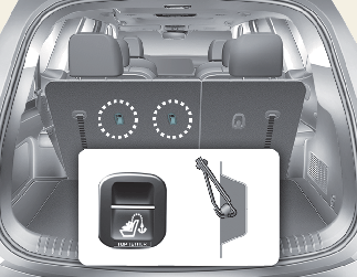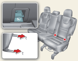 Les ancrages LATCH sont situés entre le dossier et le coussin de siège des places assises latérales gauche et droite de 2ème rangée et latérale gauche de 3ème rangée.