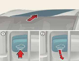 Poussez le commutateur de toit ouvrant vers l’avant lorsque la vitre du toit ouvrant est inclinée pour la fermer.