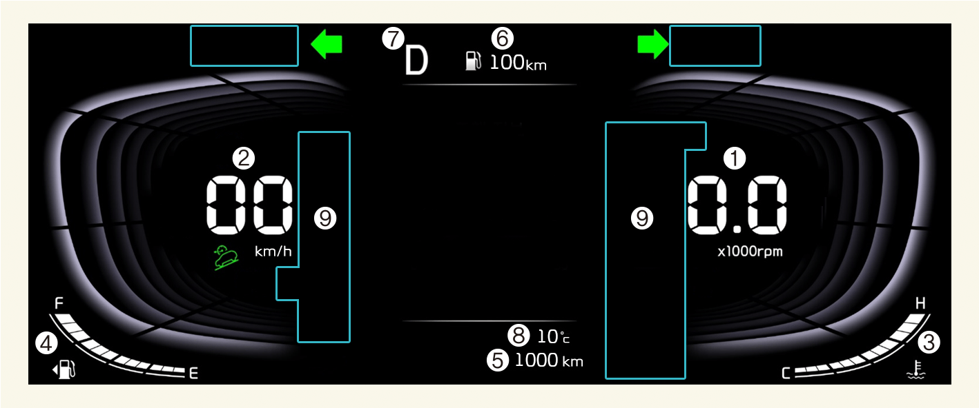 * Le bloc d'instruments et le contenu réels de l'affichage LCD dans le véhicule peuvent différer de l'illustration.