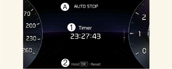 L'affichage AUTO STOP (Arrêt automatique) indique le temps écoulé depuis l'arrêt du moteur par le système Idle Stop and Go (ISG).
